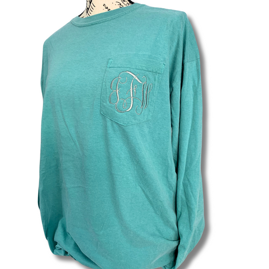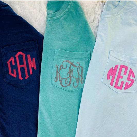 Monogrammed Long Sleeve Comfort Colors Pocket Tee
