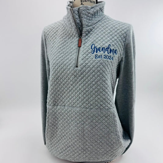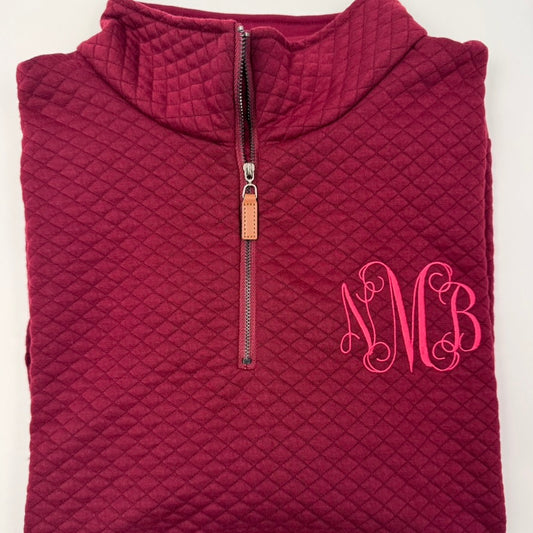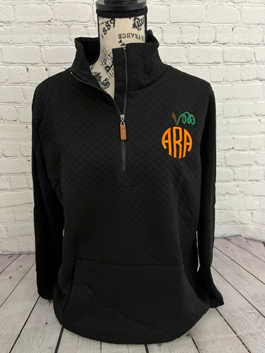 Pumpkin Monogram Quilted Quarter Zip Pullover